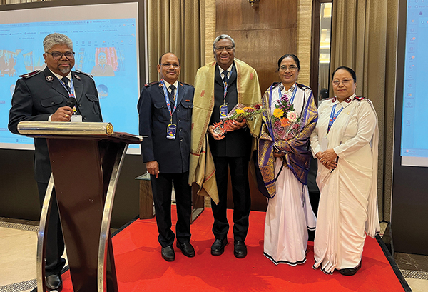 The final day emphasized spiritual renewal and leadership challenges, culminating in a meaningful closing ceremony led by Commissioner John Kumar Dasari. The service included praise and worship, certificate distribution, and heartfelt testimonies from delegates. A farewell salute was offered to Commissioners Vanlalfela and Ropari, Territorial Leaders of India Northern Territory, and Lieut-Colonels Zothanmawia and Vanlalnungi, Chief Secretary and TSWM of India Western Territory, as they would be retiring from active service in next year. They shared their responses and were honoured with bouquets and shawls acknowledging their faithful service. Commissioner Garth Niemand delivered an inspiring message from Romans 12:1–8, urging delegates to step out of discouragement, step into God's Word, and step up to fulfil God's calling with humility and purpose.
