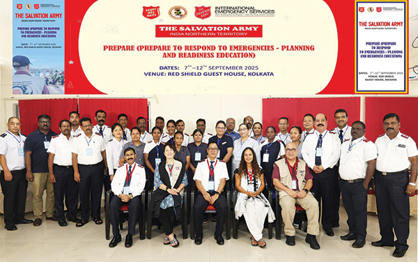 The Salvation Army took a major step in strengthening its emergency response efforts by organising the PREPARE Training “Prepare to Respond to Emergency: Planning and Readiness Education” from 7th to 12th September 2025 at the Red Shield Guest House, Kolkata. Hosted by the Northern Territory, the training was led by the International Emergency Services team from the Salvation Army's International Headquarters in London.